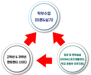 CKSM스포츠재활센터에서 스포츠재활의학전공 학생들의 학부 수업과 임상실습이 병행되는 재활센터의 역할을 담당하고 있으며, 졸업 후 개업을 위한 모델링과 프랜차이즈 형태의 비즈니스모델을 배우는 장소로 활용되고 있습니다.