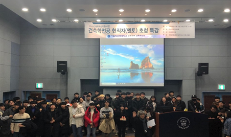 신입생 VERUM CAMP 학기 초반 신입생들이 친목을 다질 수 있는 활동. 건축학부 MT 전체 학년이 모여 함께 즐길 수 있는 학과행사 활동. - 국제교류행사 가톨릭관동대학교 건축학전공과 프랑스 그르노블 건축 대학교의 국제교류행사로 건축 및 도시의 미래에 대해 융 복합적인 아이디어를 창출하기 위한 행사. - 건축학전공 특강 학생들을 위한 매 학기 현장 전문가 초청 특강.