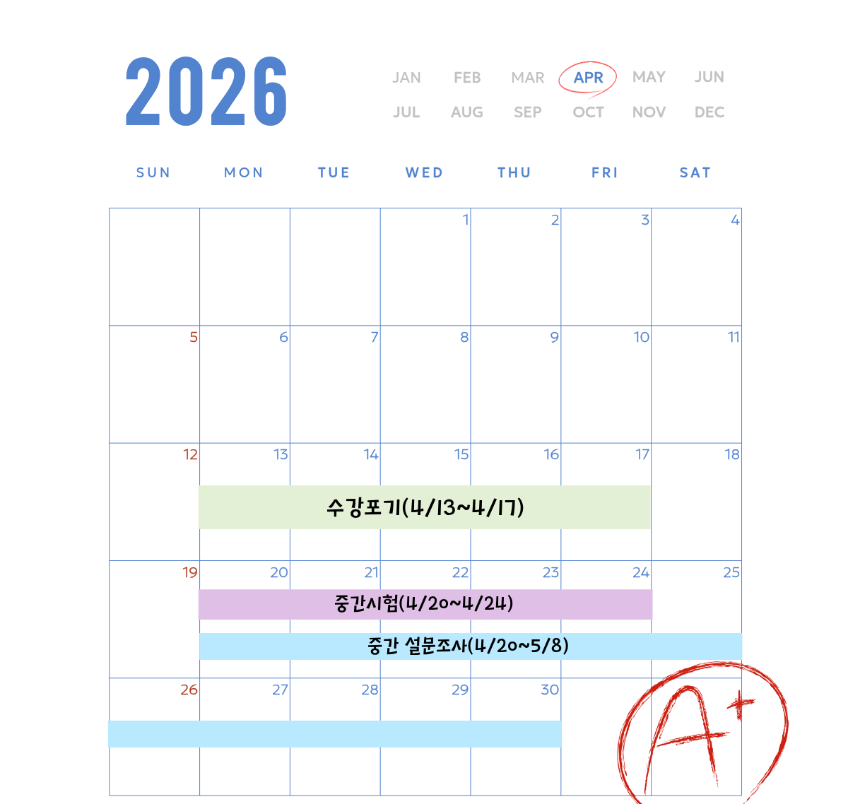 4월 주요 학사일정을 안내드리오니 학사 일정에 참고해주시기 바랍니다.