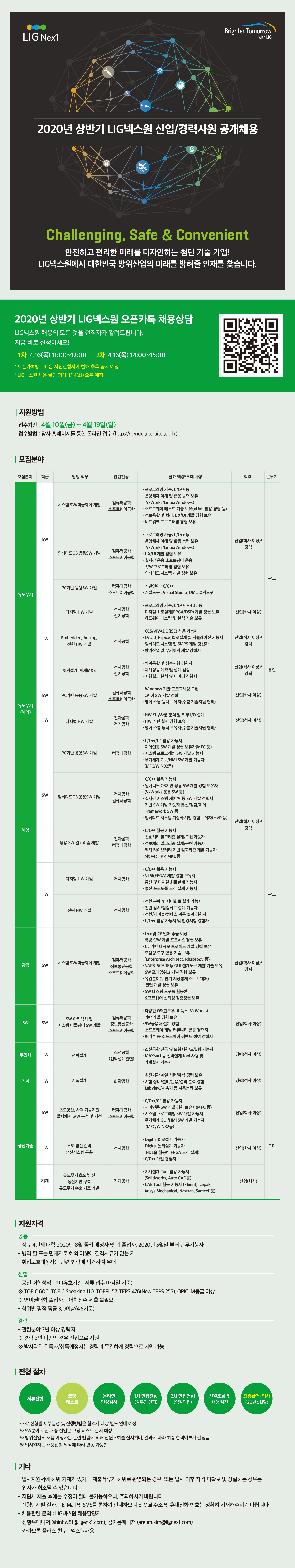 2020년 상반기 LIG넥스원 공개채용안내입니다.