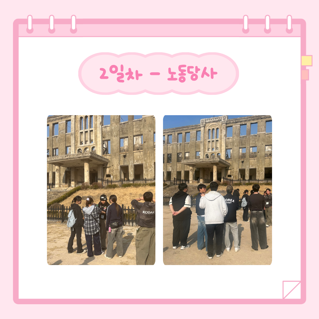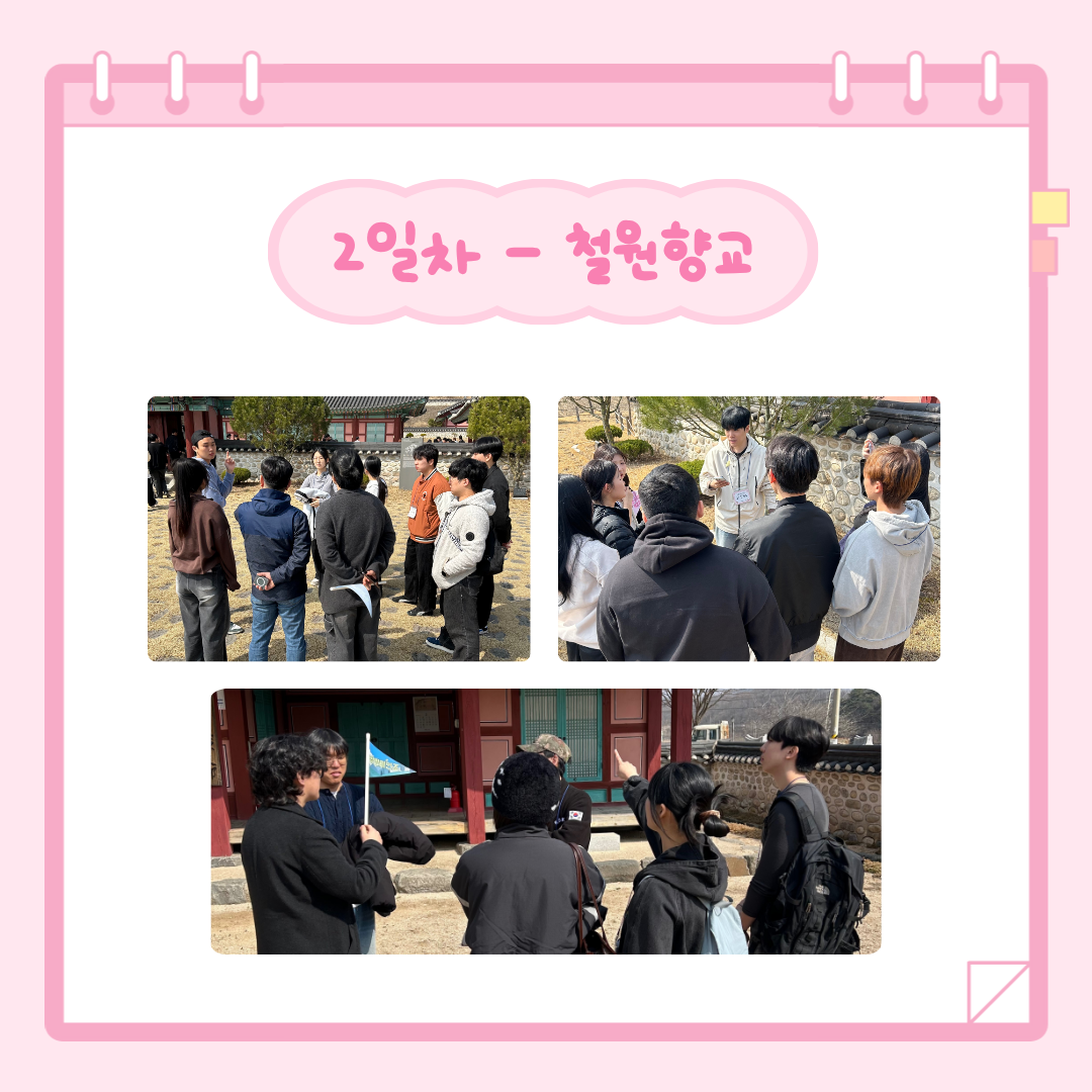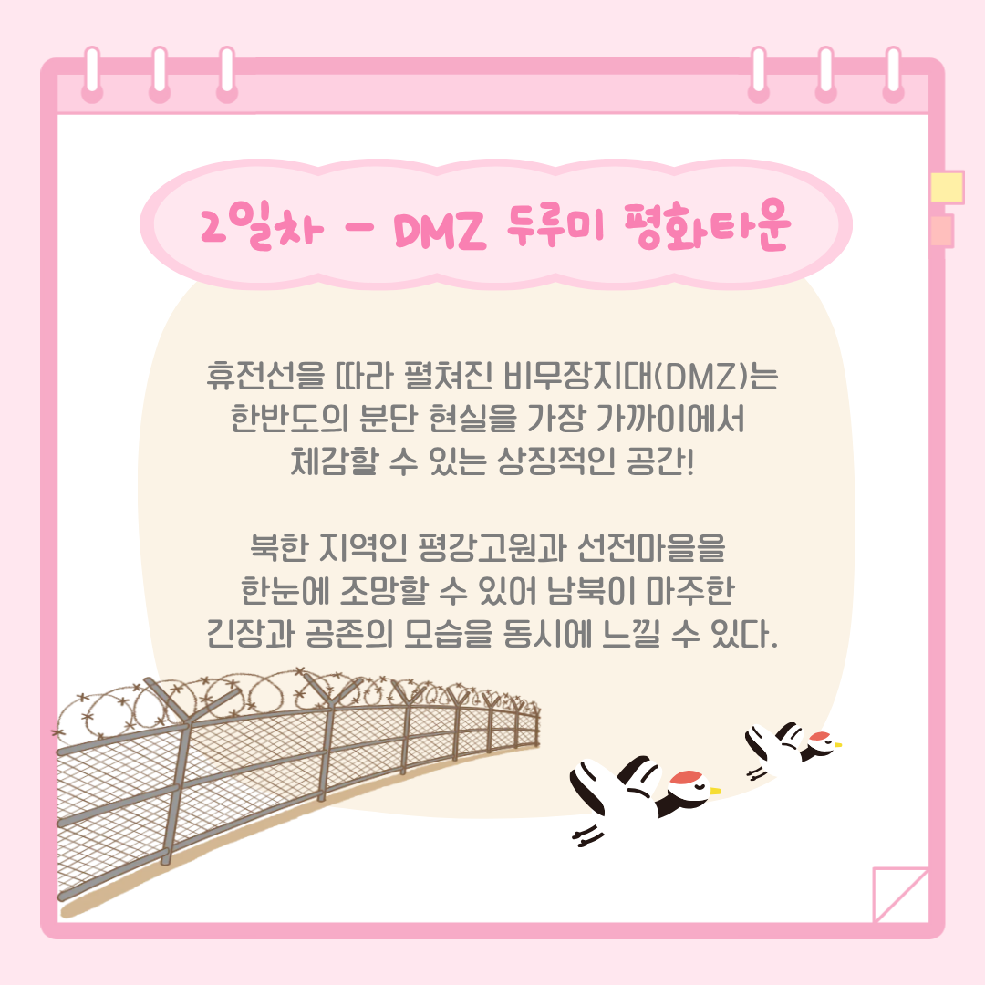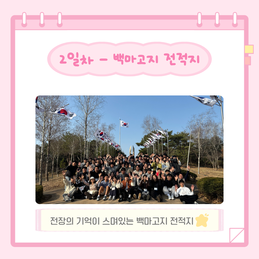 2일차에는 철원의 도피안사, 철원향교, DMZ 두루미 평화타운, 백마고지 전적지, 노동당사를 관람하였습니다.