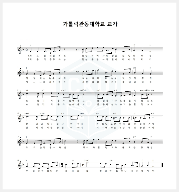 심볼마크는 가톨릭관동대학교를 집약적으로 상징하는 시각물로서 아이덴티티 시스템의 핵심이 되는 가장 중요한 기본 요소이다.