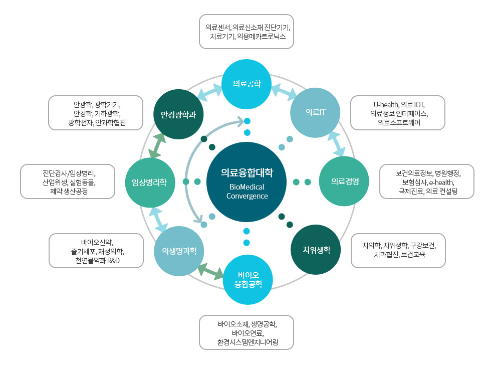 가톨릭관동대학교 헬스케어융합대학 지성적 교양인, 융합적 지식인, 혁신적 창의인, 실천적 전문인 인재상을 실현하기 위해 보건의료과학의 창의실용을 위한 융복합 특성화 교육 실시 진단기기 개발분야 예방 및 치료제 개발 분야 보건의료 데이터 관리 및 활용 빅데이터 활용 진단 광학 장비 개발 바이오에너지, 바이오소재 공학, 발효공학 헬스케어융합대학 발전방향 헬스케어융합대학 특성화(BT-IT-HT 분야 8개 학과) SWOT